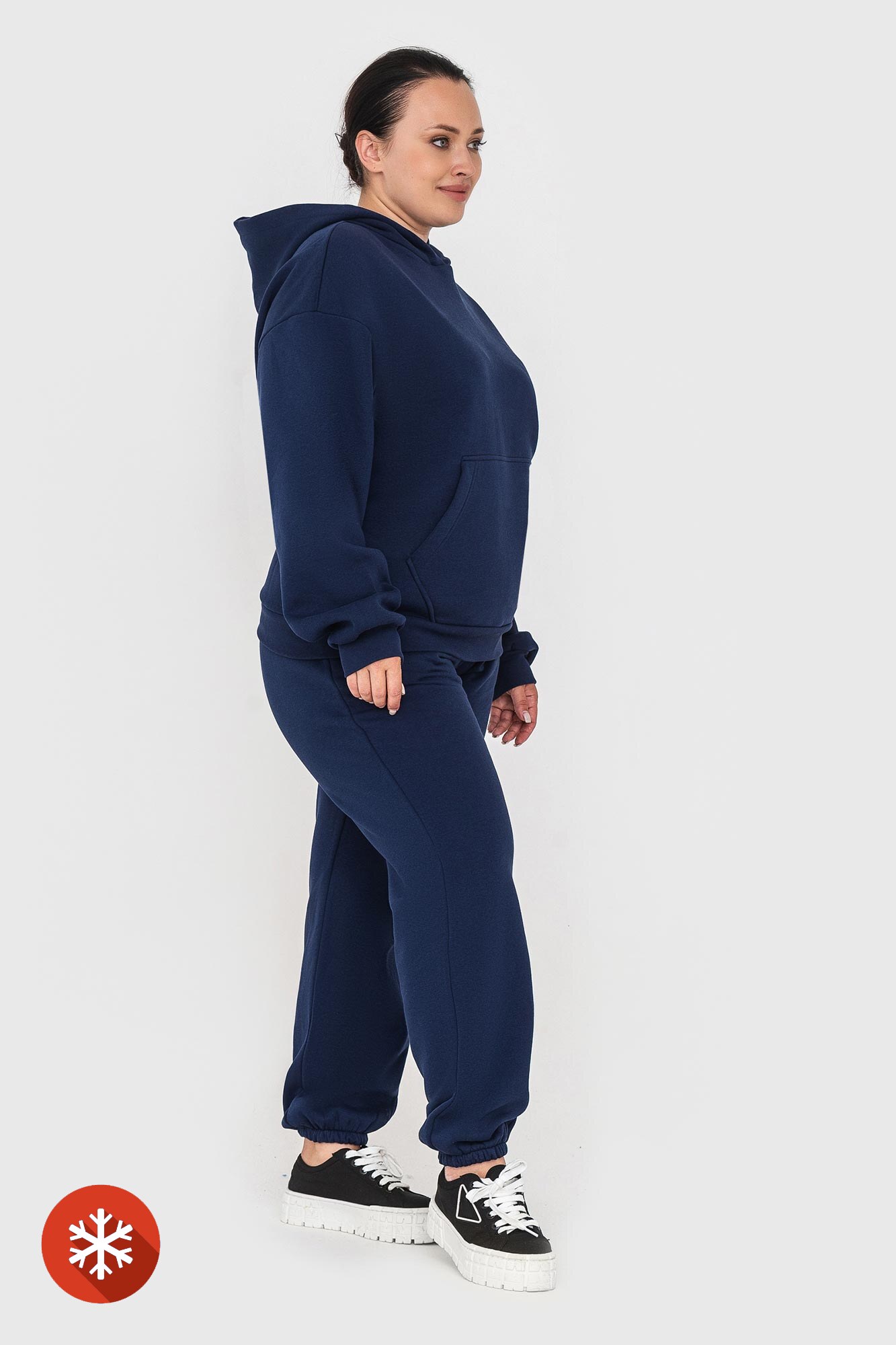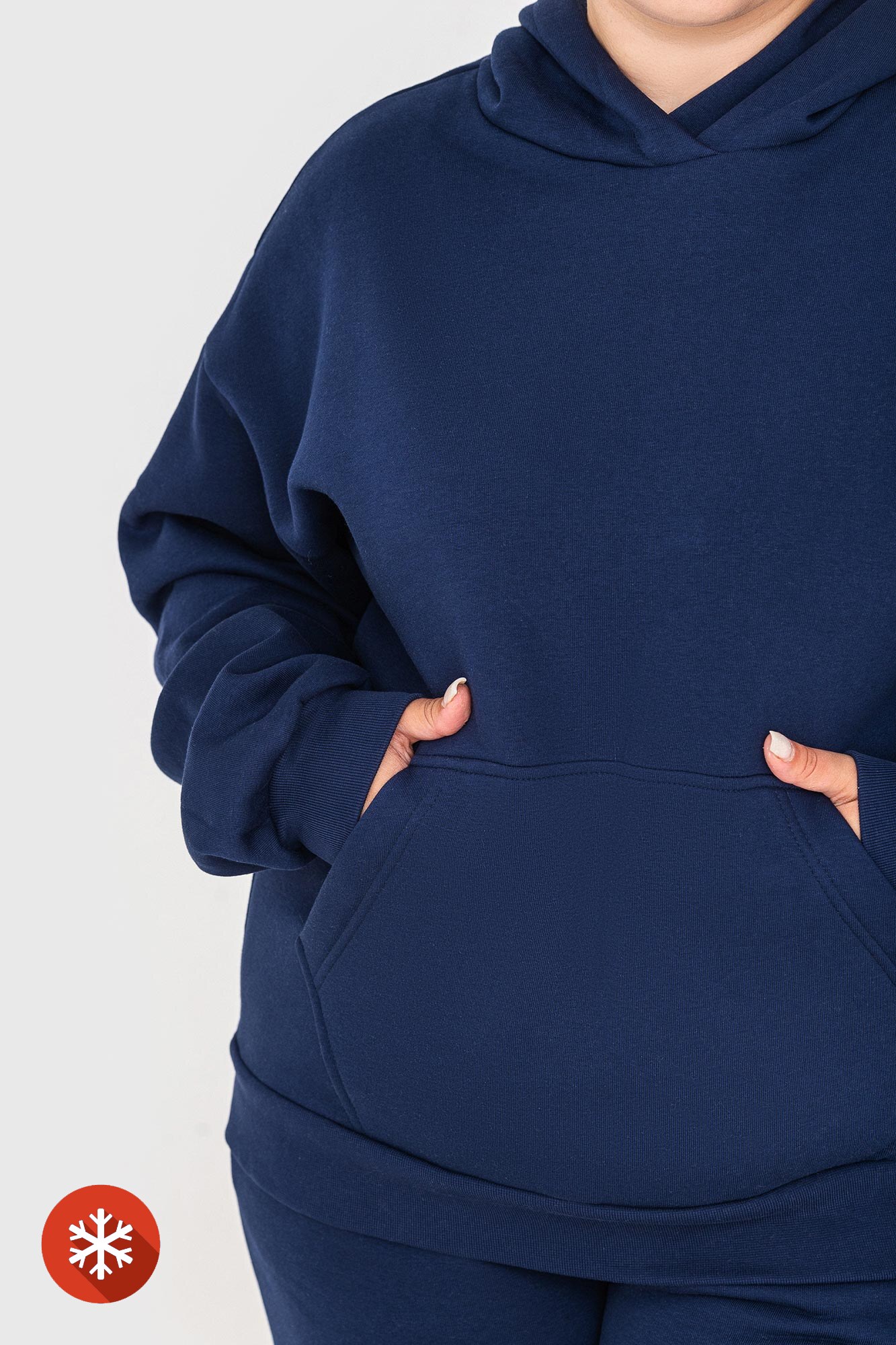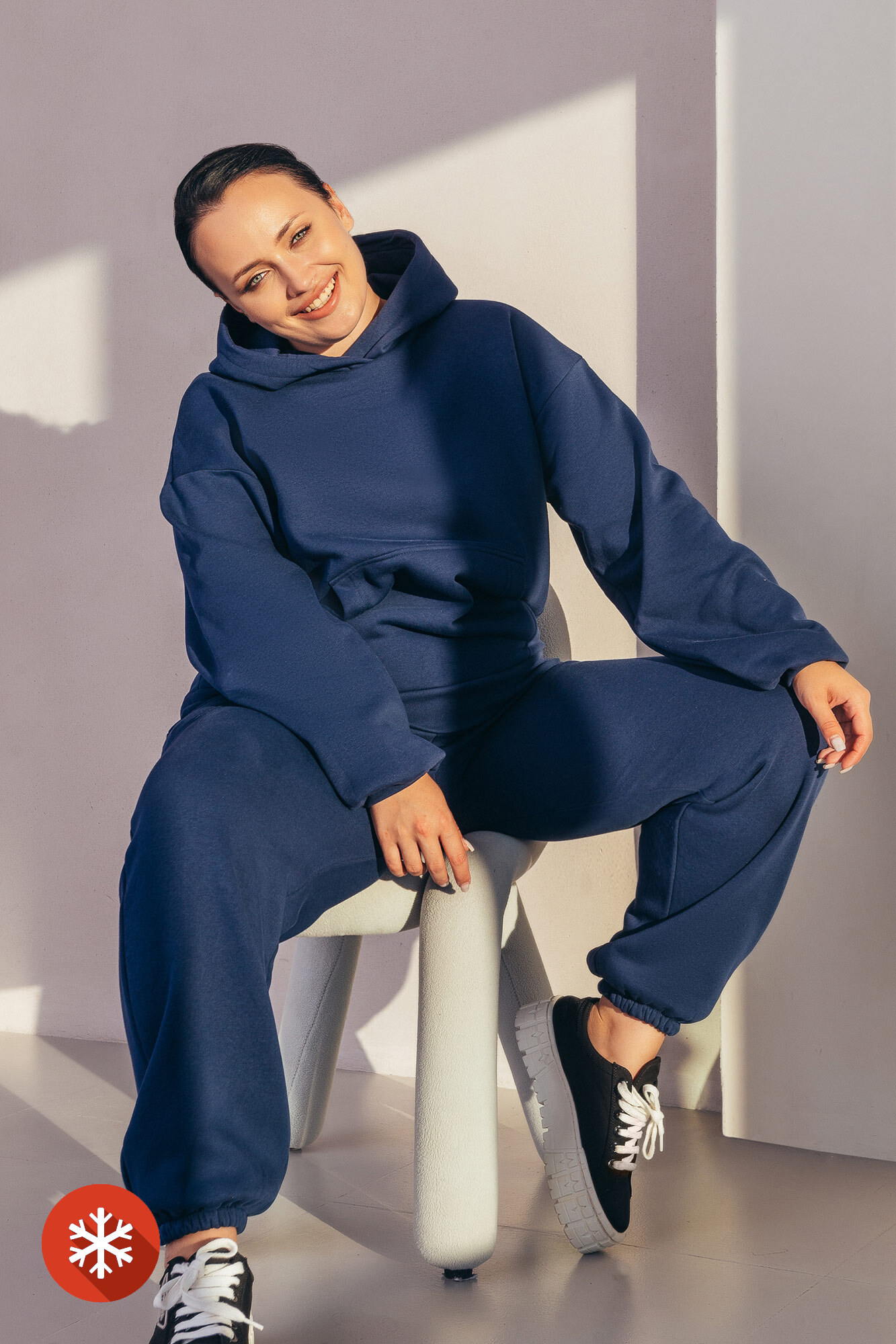 Damski ocieplany dres KAMALA w kolorze granatowym – bluza z kapturem i spodnie dresowe Garne 3041001