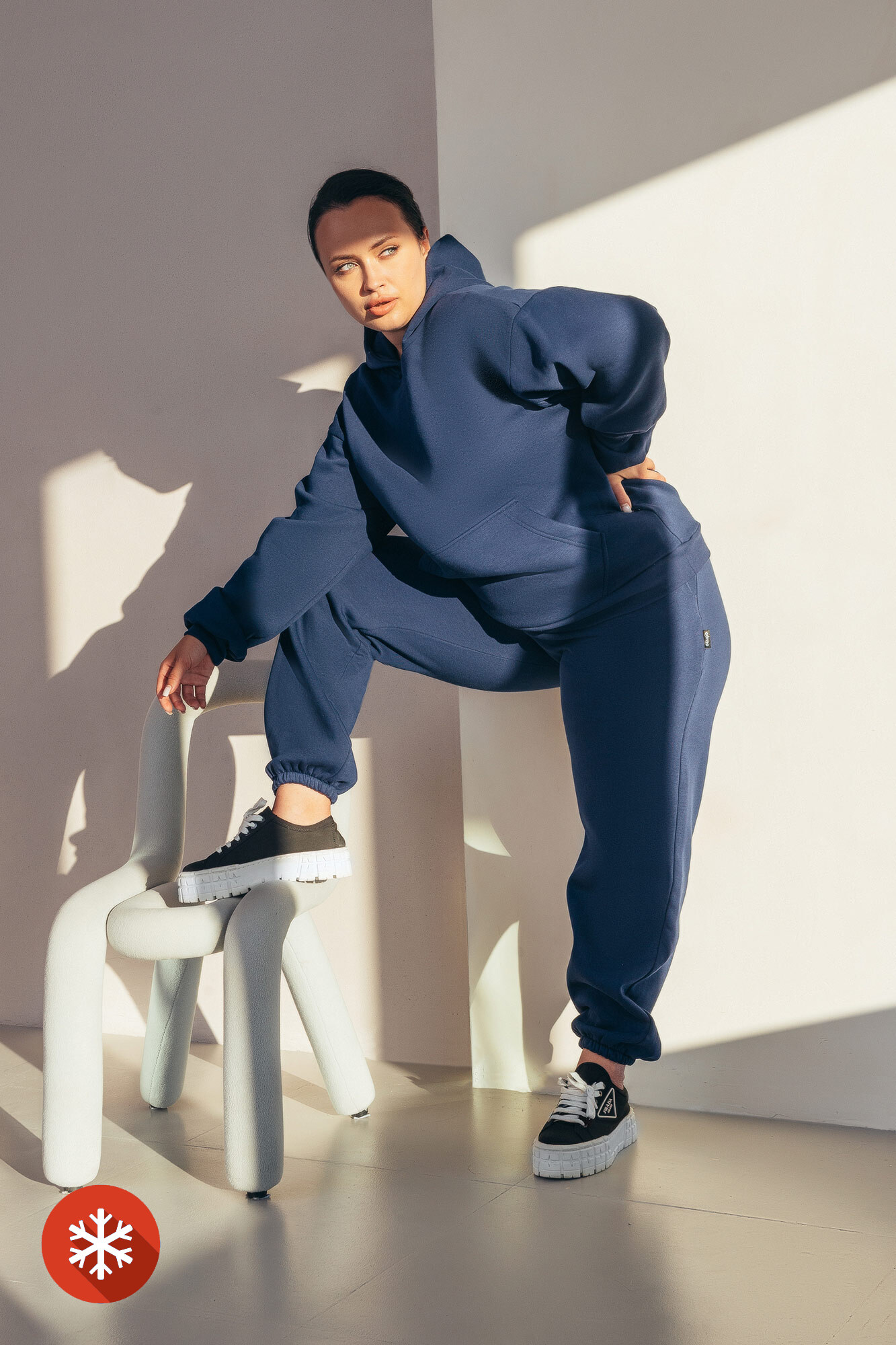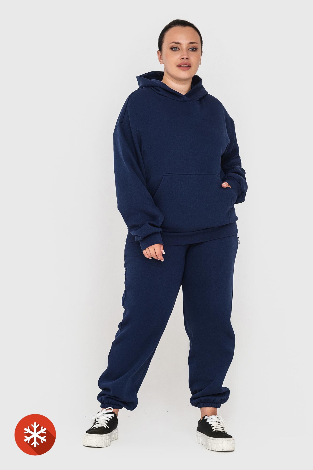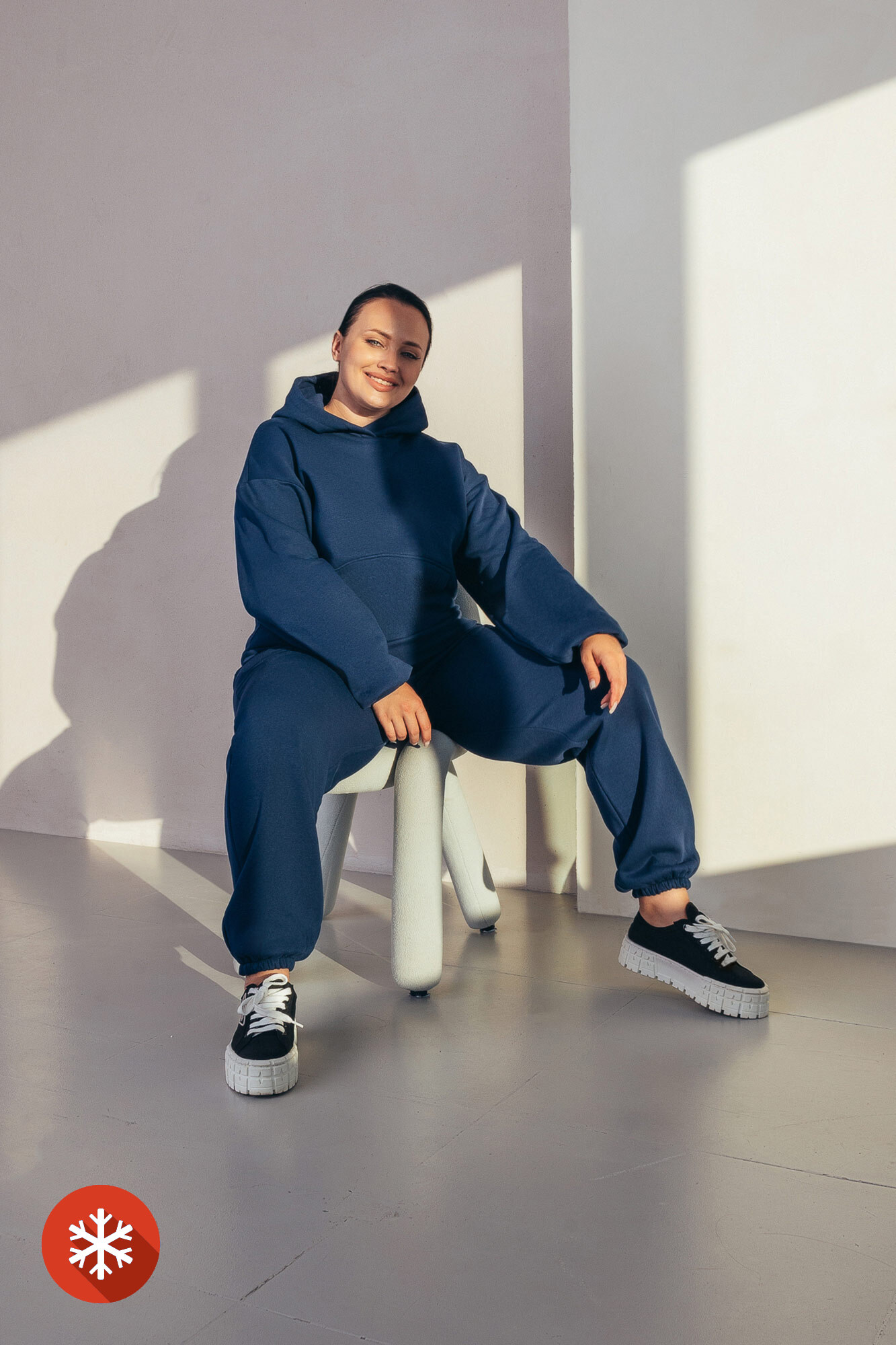 Damski ocieplany dres KAMALA w kolorze granatowym – bluza z kapturem i spodnie dresowe Garne 3041001