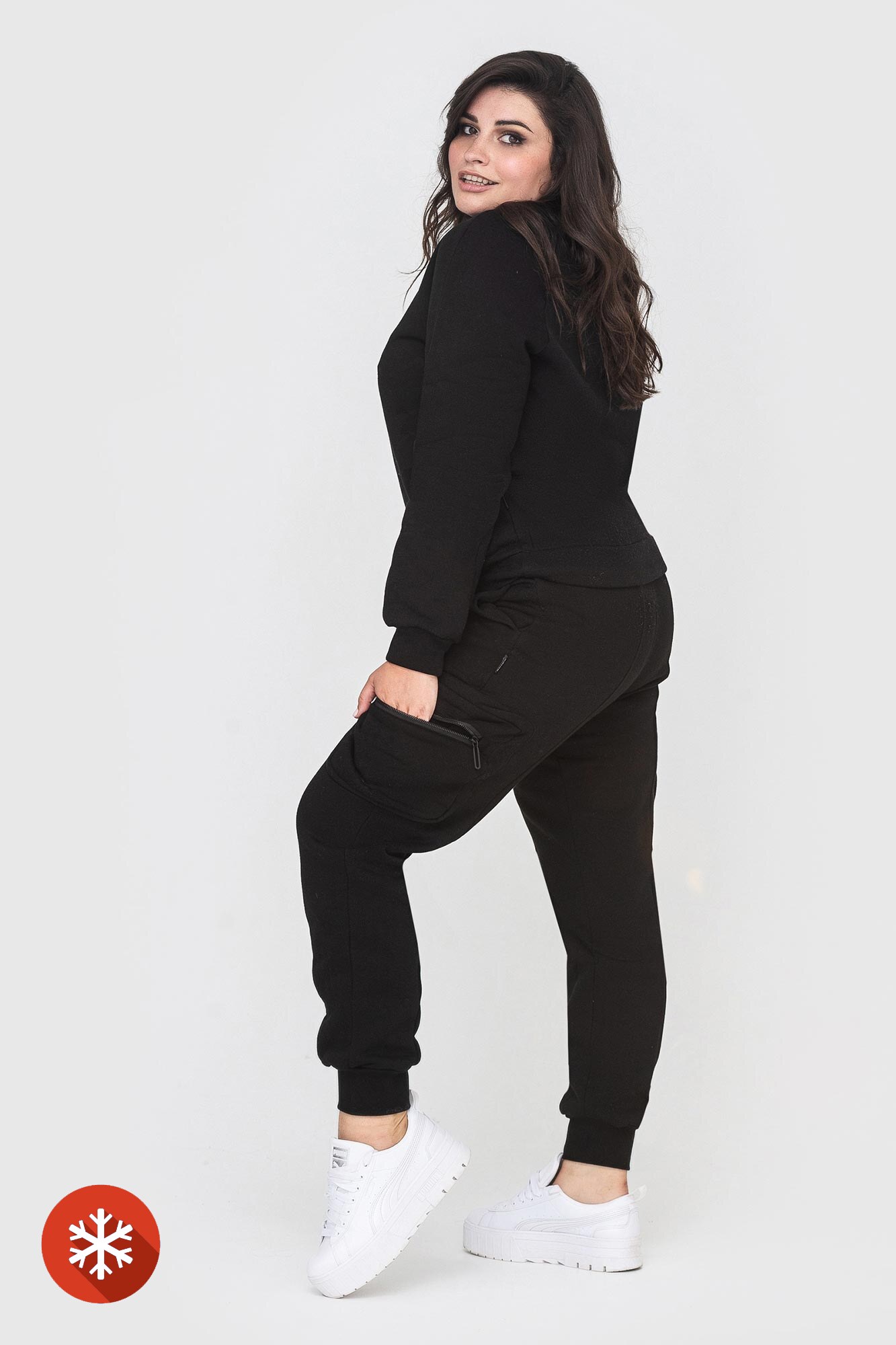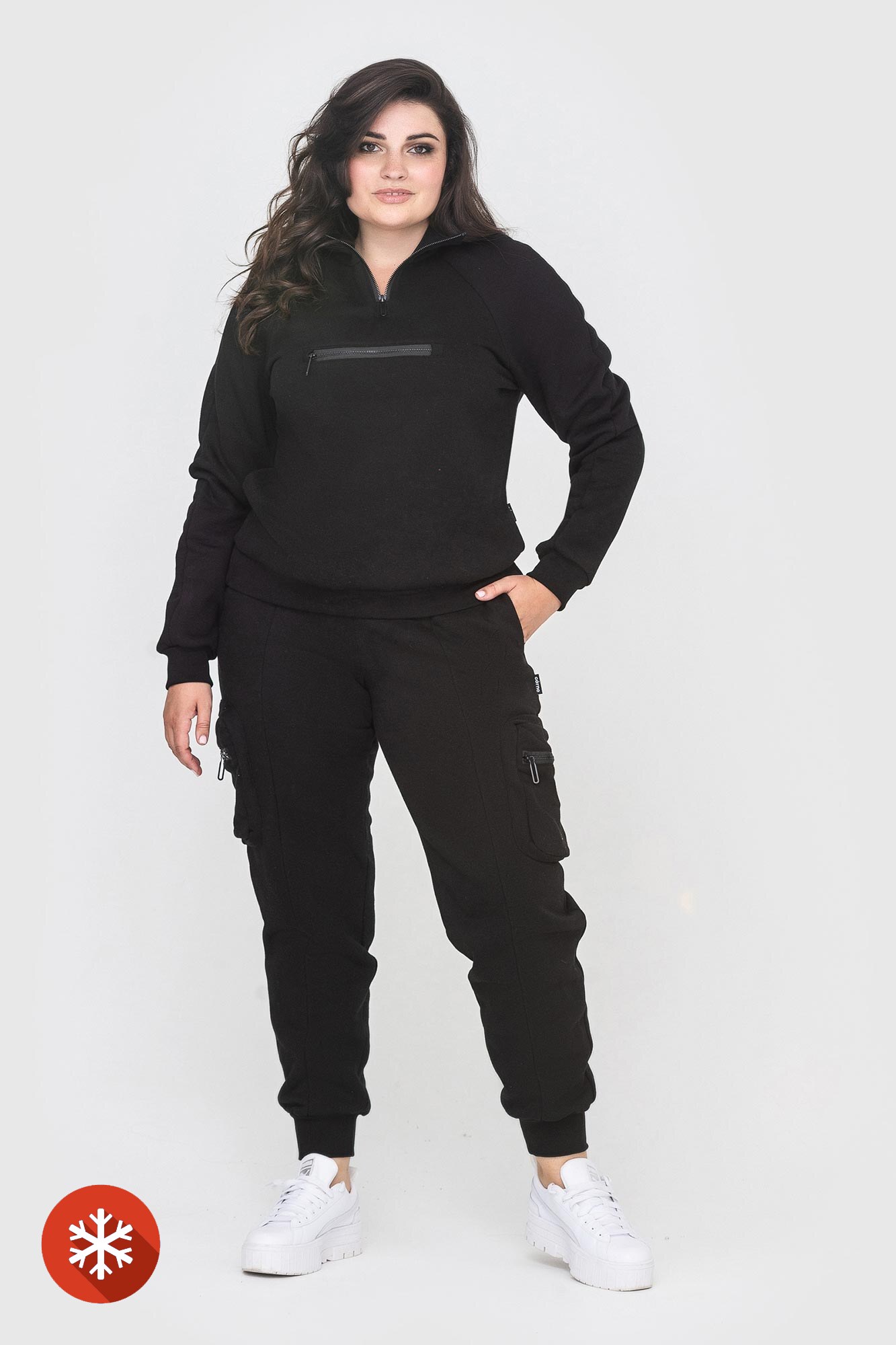 Damski ocieplany komplet OLESYA w kolorze czarnym – bluza z zamkiem i spodnie cargo Garne 3041021