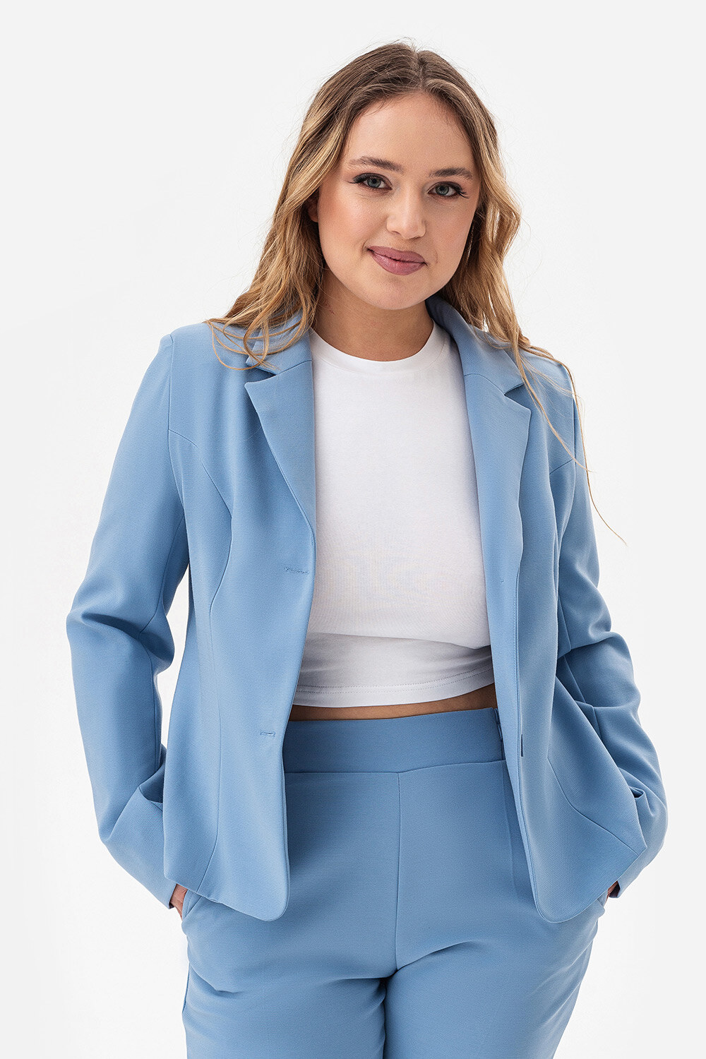 - Ta zapinana na guziki marynarka o klasycznym kroju i minimalistycznym designie nadaje się do stworzenia eleganckiej lub biznesowej stylizacji.