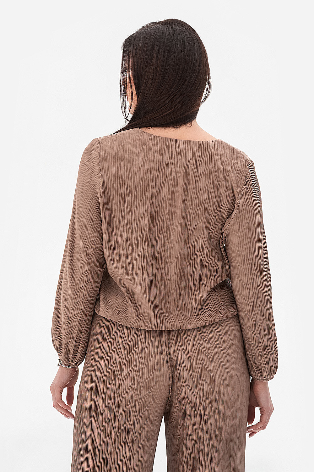 - Elegancka bluzka damska wykonana z teksturowanego materiału