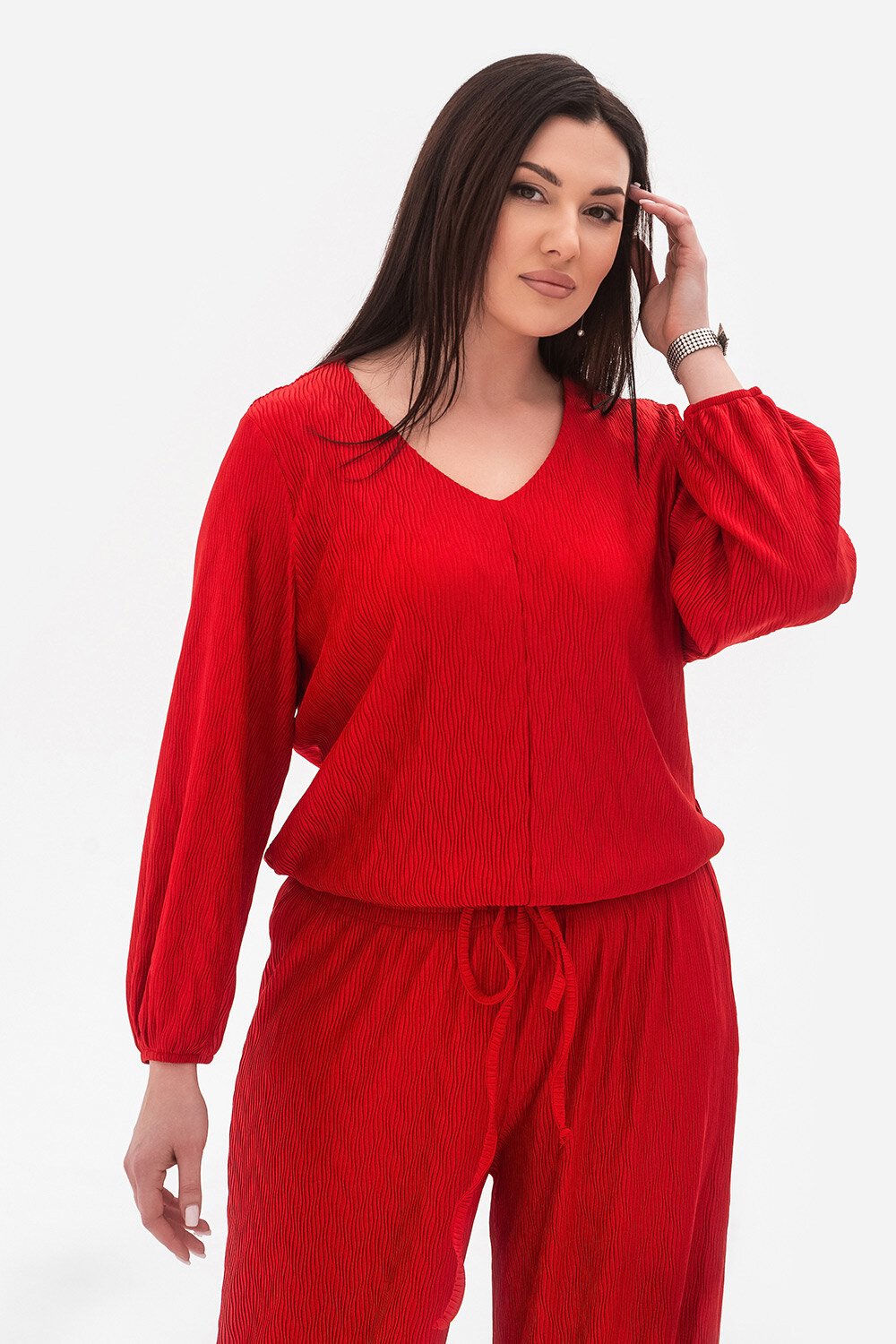 - Elegancka bluzka damska wykonana z teksturowanego materiału