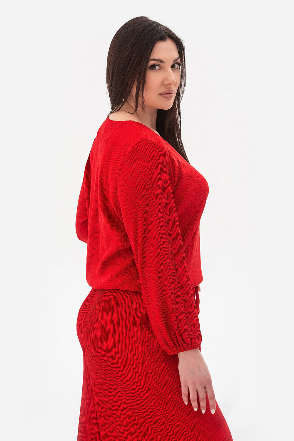 - Dekolt w kształcie litery V optycznie wydłuża szyję i dodaje wyrafinowania wyglądowi.