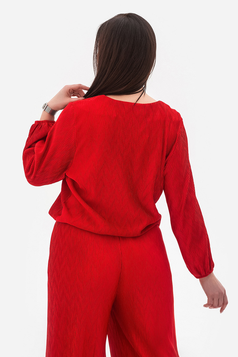 - Długie rękawy dodają powściągliwości i elegancji, dzięki czemu ta bluzka jest idealna zarówno do pracy, jak i na uroczyste okazje.