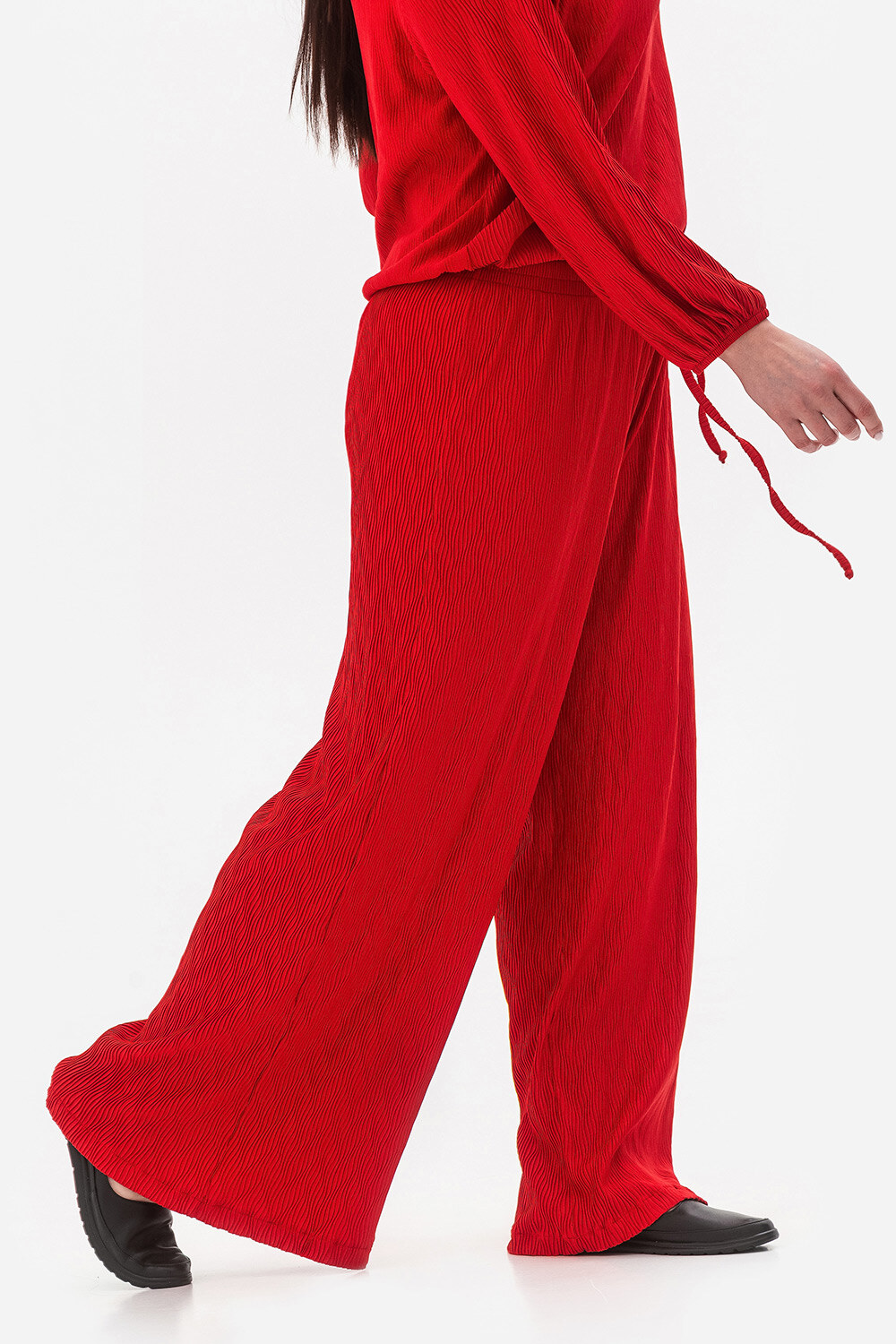 - Spodnie z szerokimi nogawkami tworzą spektakularną sylwetkę, wyglądają bardzo elegancko i pasują do kobiet o każdym typie sylwetki.