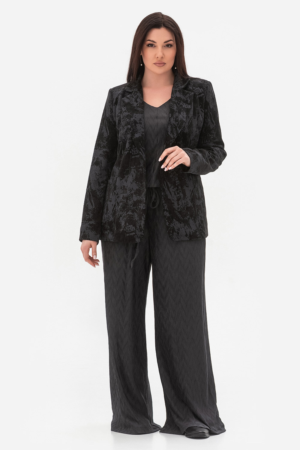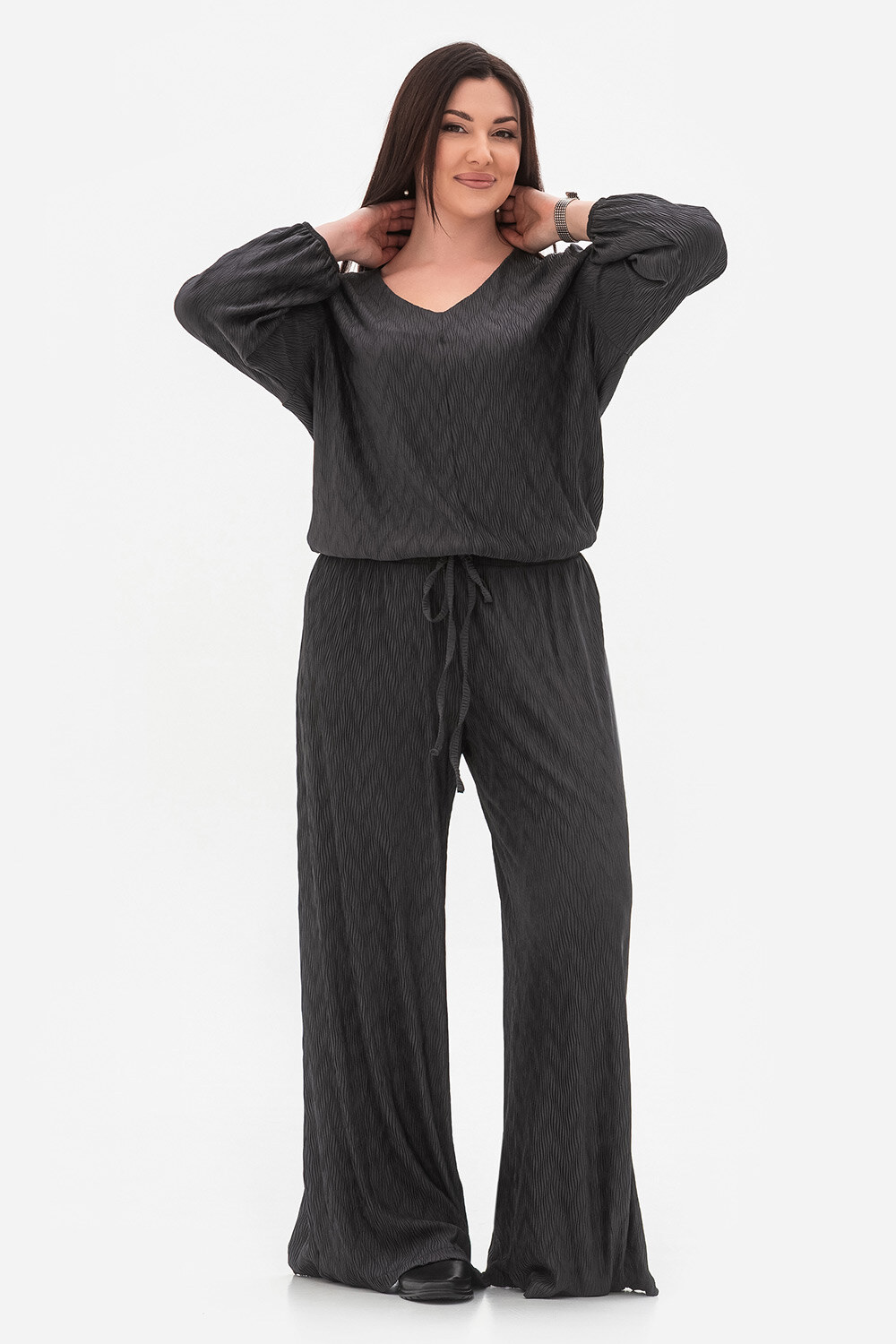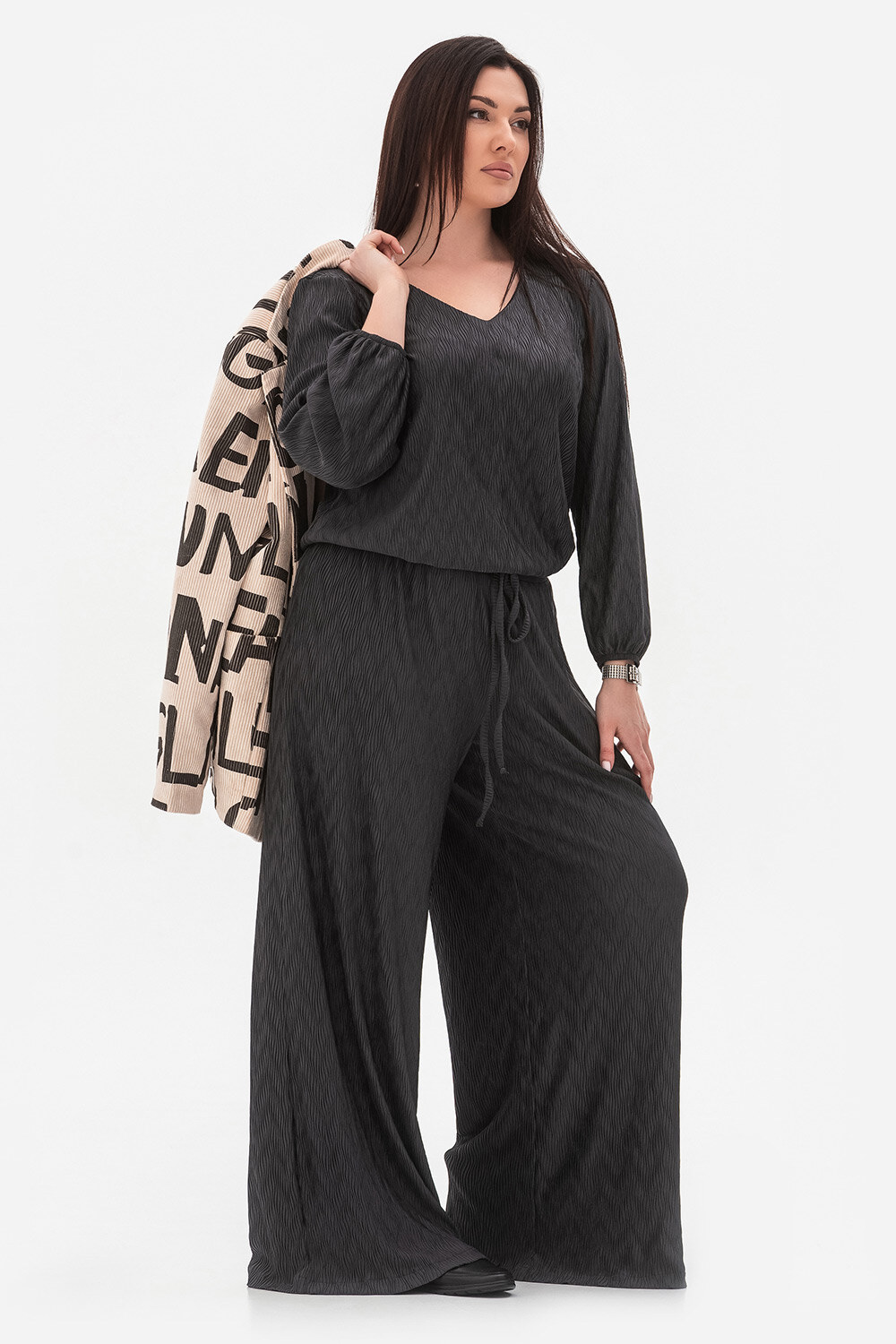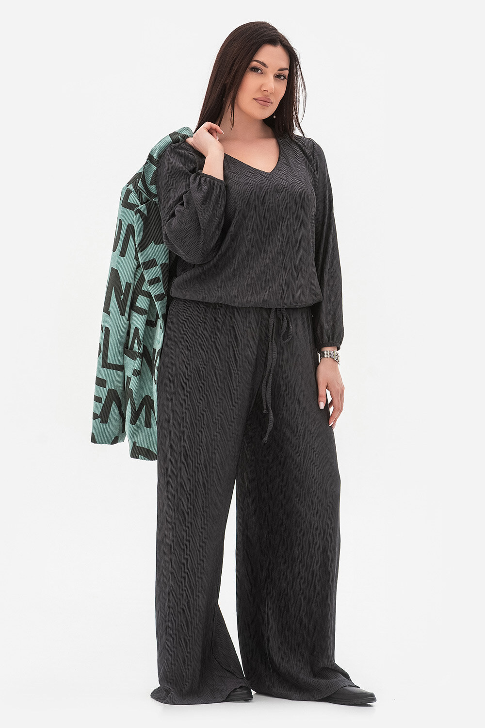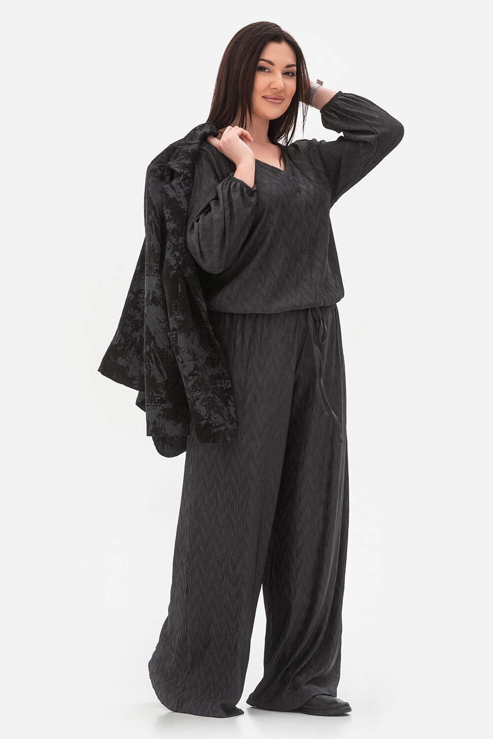 - Damskie spodnie z szerokimi nogawkami wykonane z teksturowanego materiału - połączenie stylu i wygody.