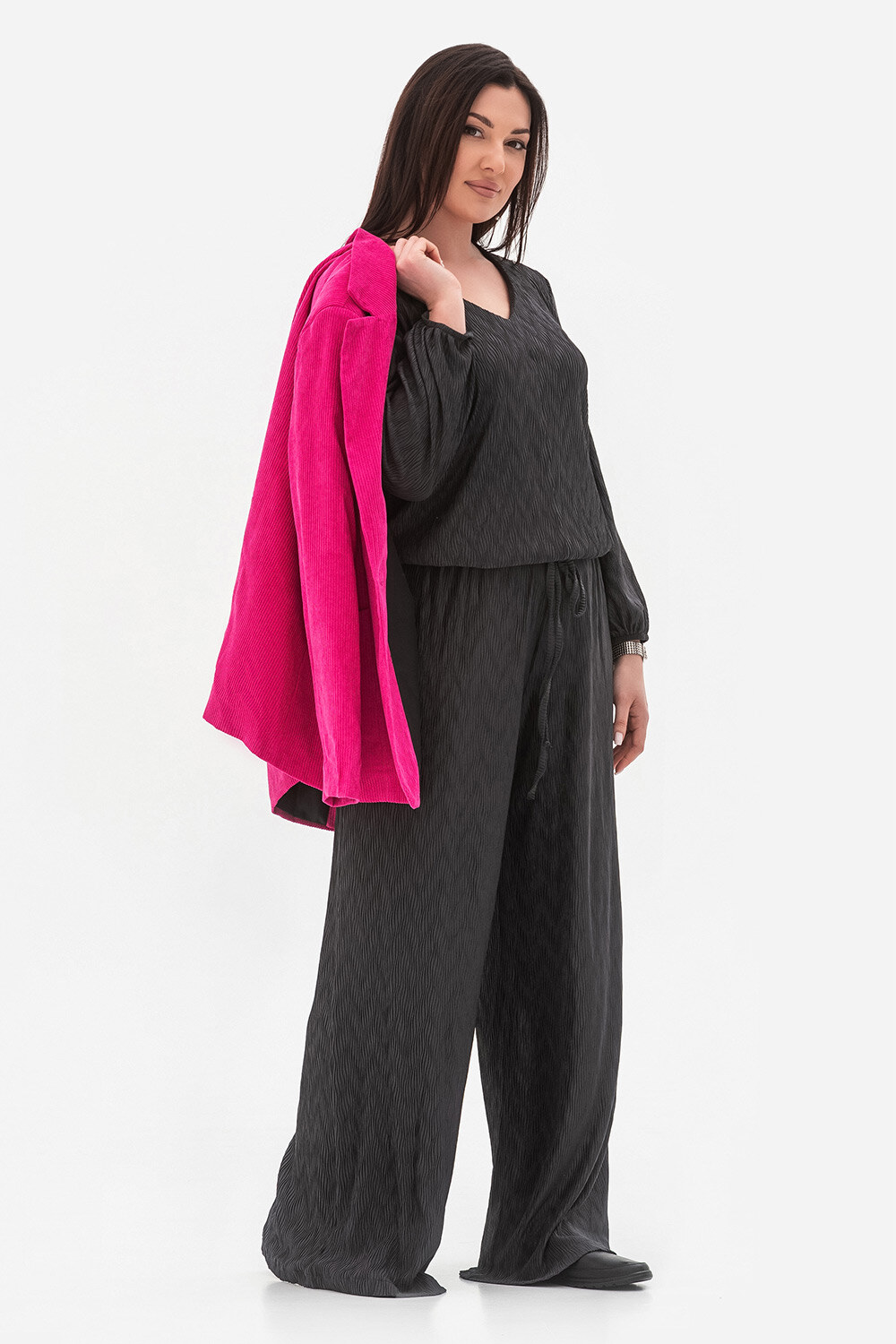 - Spodnie z szerokimi nogawkami tworzą spektakularną sylwetkę, wyglądają bardzo elegancko i pasują do kobiet o każdym typie sylwetki.