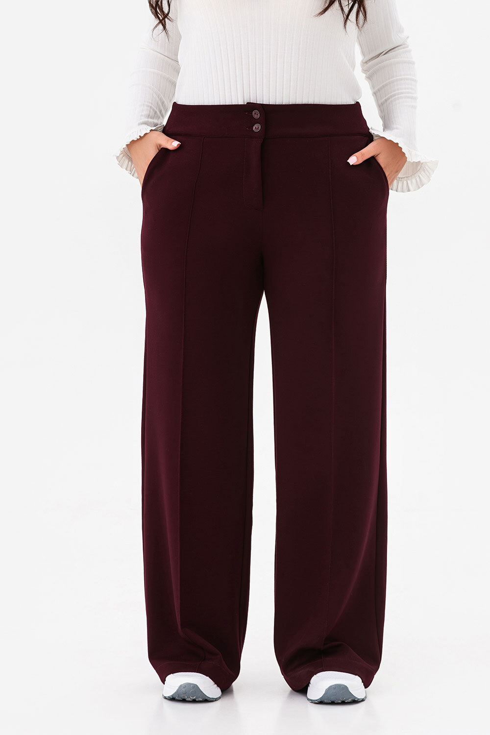 - Dzięki szerokiemu krojowi spodnie doskonale równoważą sylwetkę, dodając lekkości i elegancji nawet w rozmiarze plus size.