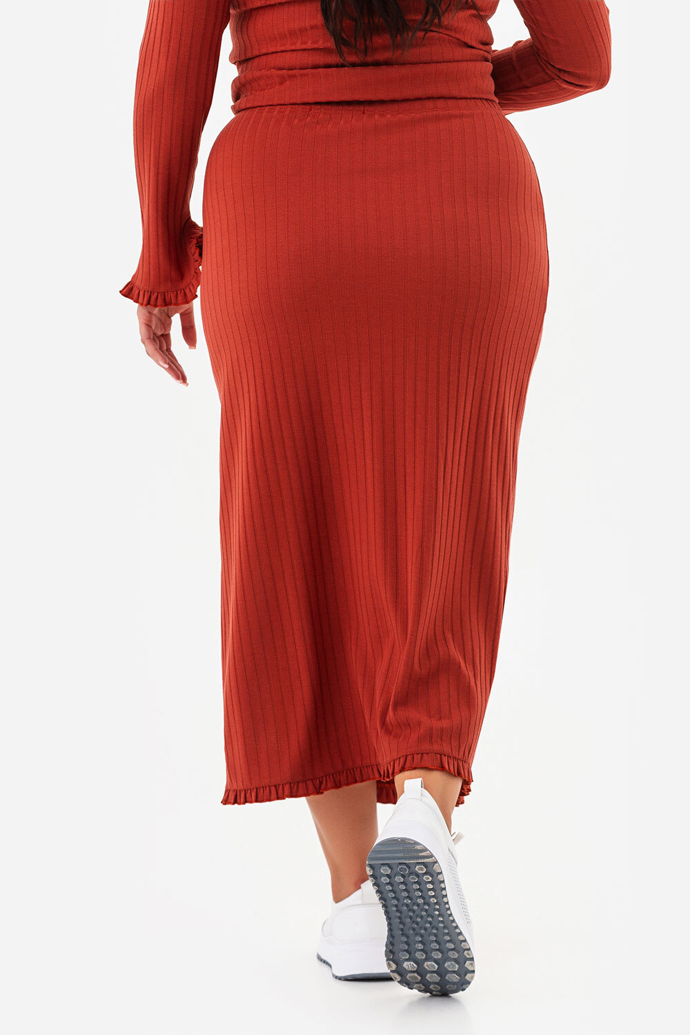 - Dzięki swojej wszechstronności spódnicę można łatwo dopasować do różnych stylów: w połączeniu z długim rękawem wygląda delikatnie i zalotnie, z żakietem lub kardiganem wygląda bardziej powściągliwie i biznesowo.