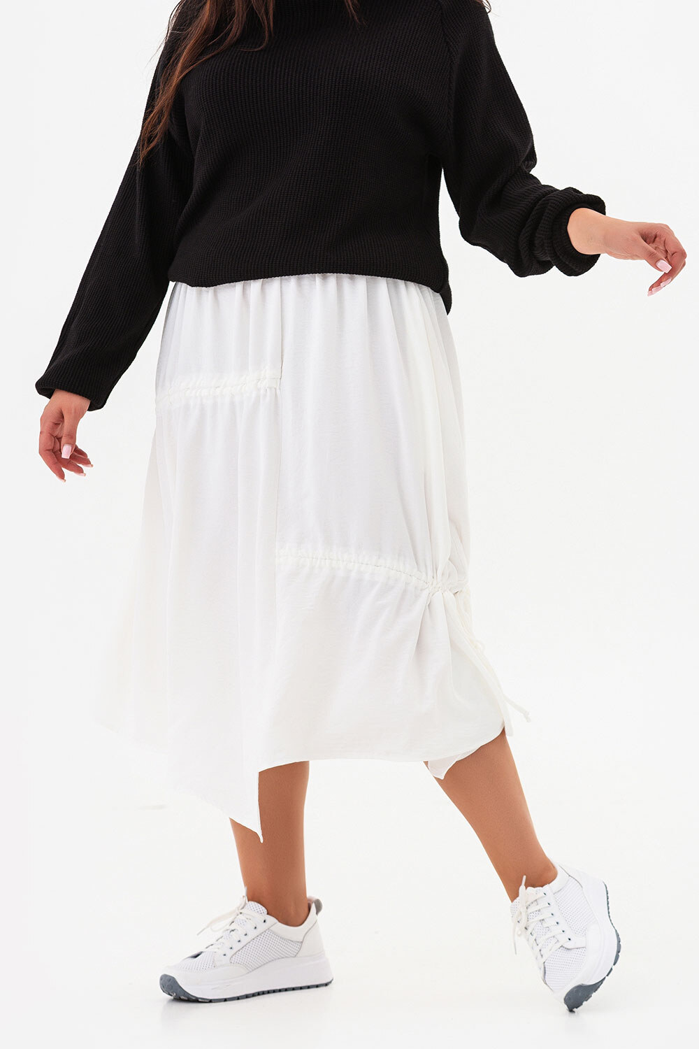 - Spódnica organicznie łączy się z grubymi dzianinowymi swetrami i brutalnymi butami, a także z klasycznymi koszulami lub eleganckimi topami.