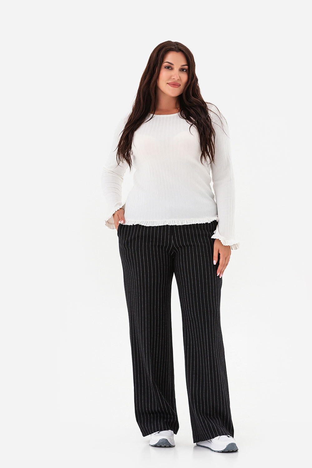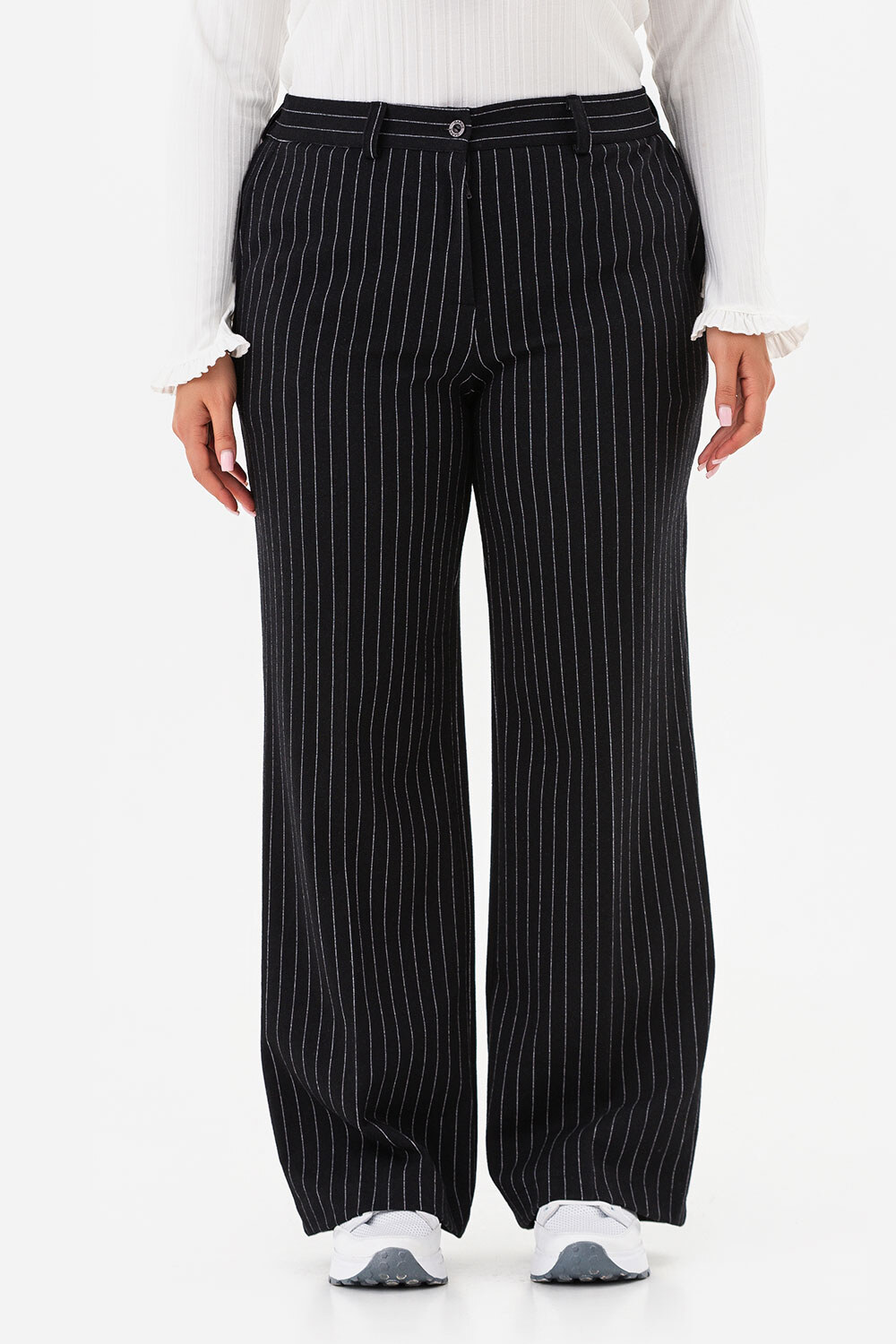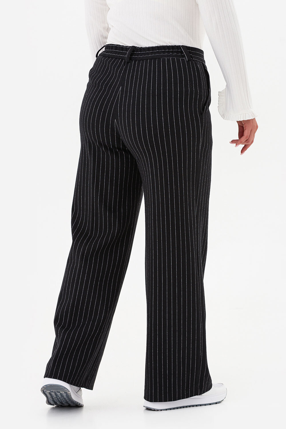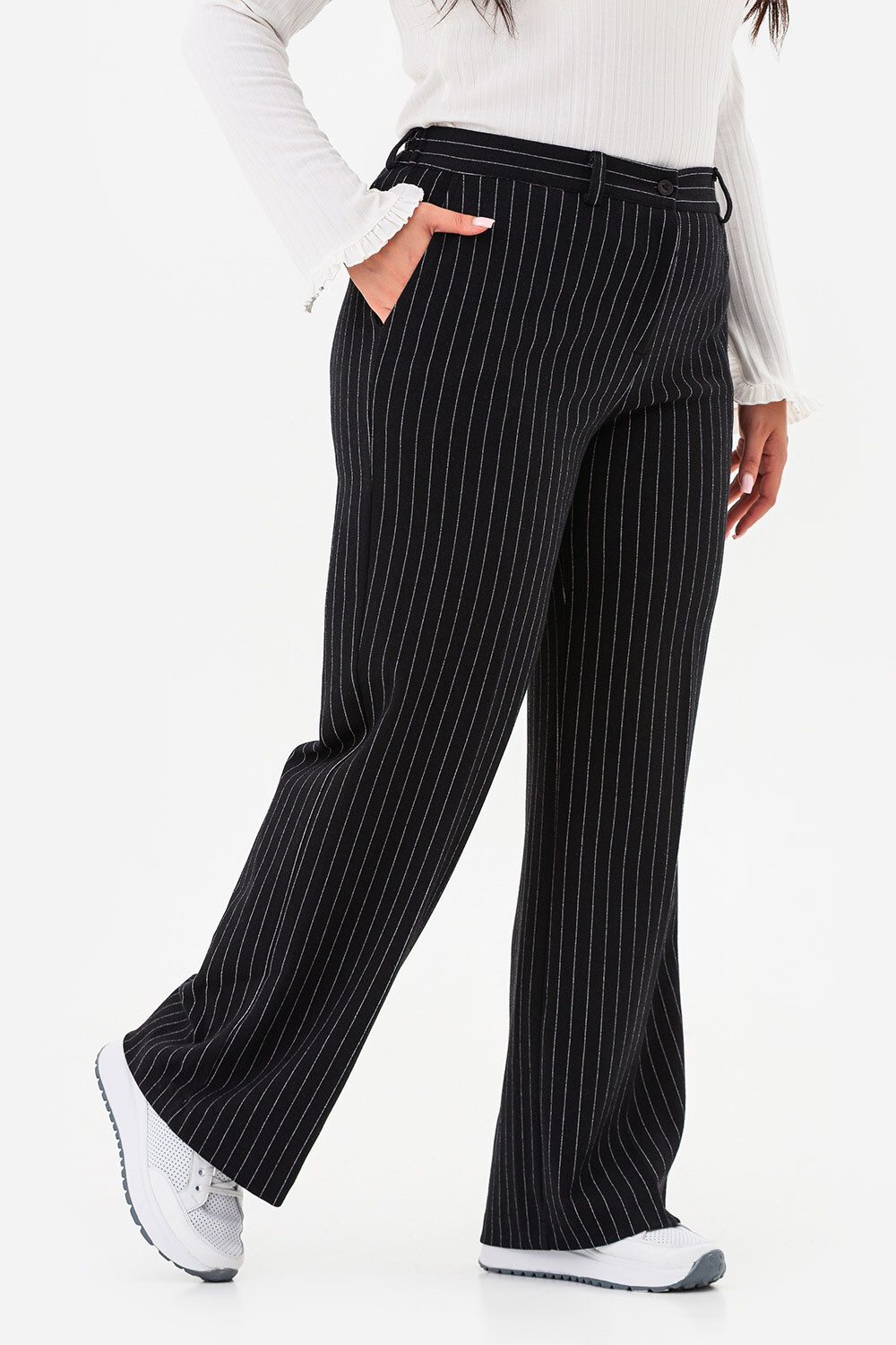 - Klasyczne spodnie w paski z naciskiem na wygodę.