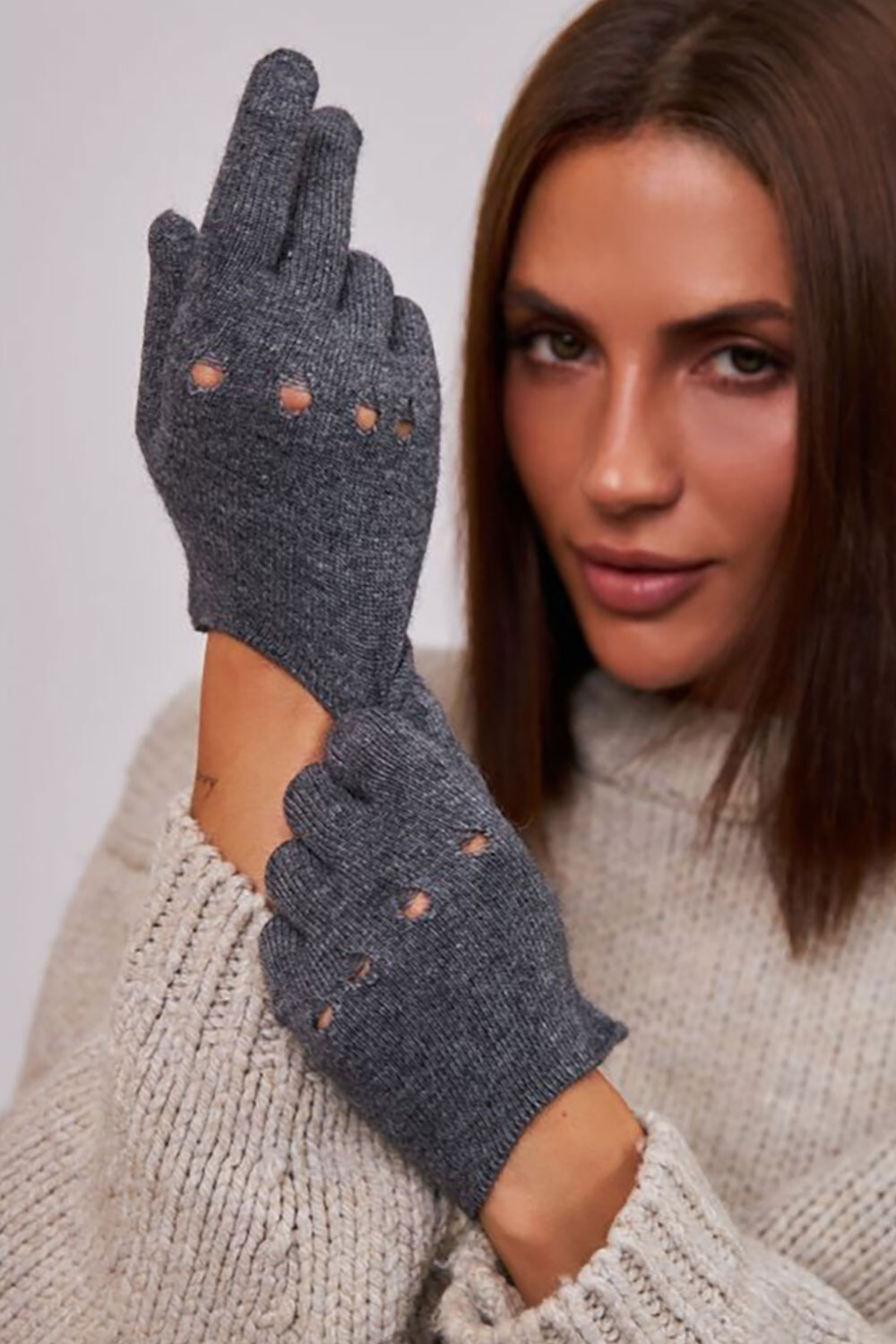 - Niesamowicie cienka dzianina idealnie dopasowuje się do dłoni, optycznie je wyszczuplając, a eleganckie, kręcone rozcięcia dodają uroku.