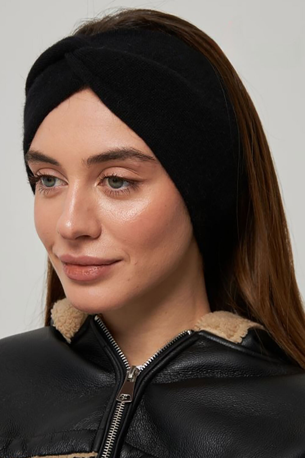 - Miękka i atrakcyjna opaska damska wykonana z gładkiej przędzy półwełnianej.