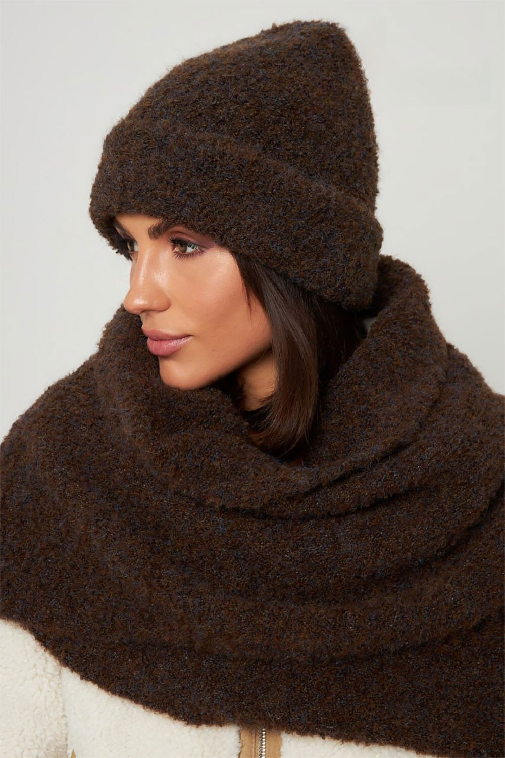 Damski zestaw czapka, szalik i rękawiczki mokka