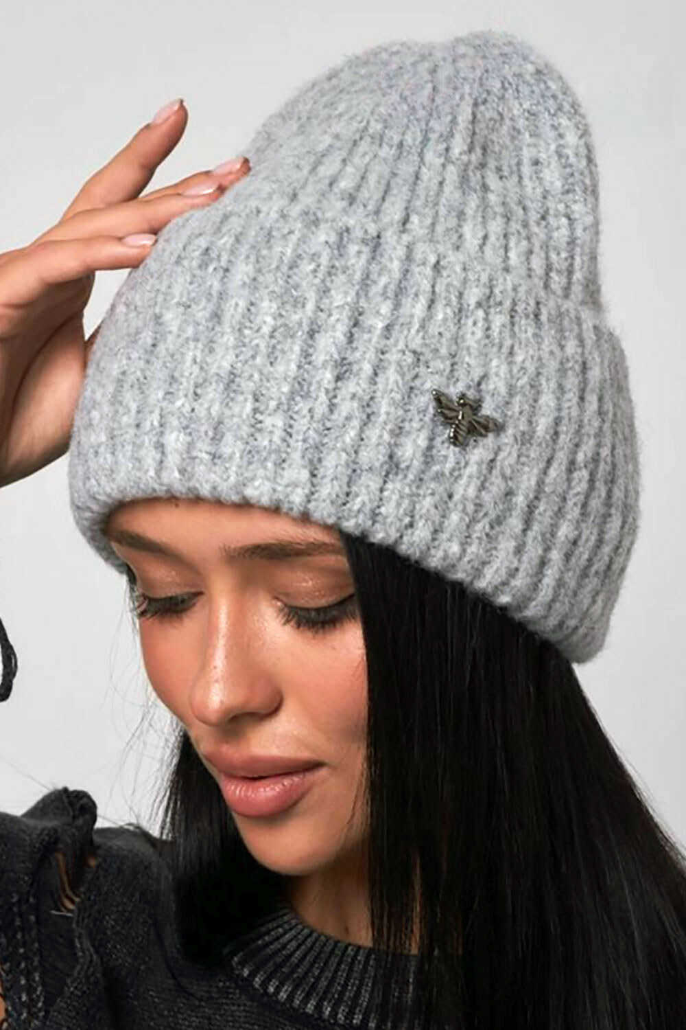 - Ciepła czapka z wygodnej elastycznej dzianiny, stylistycznie uzupełniona dość szeroką klapą.